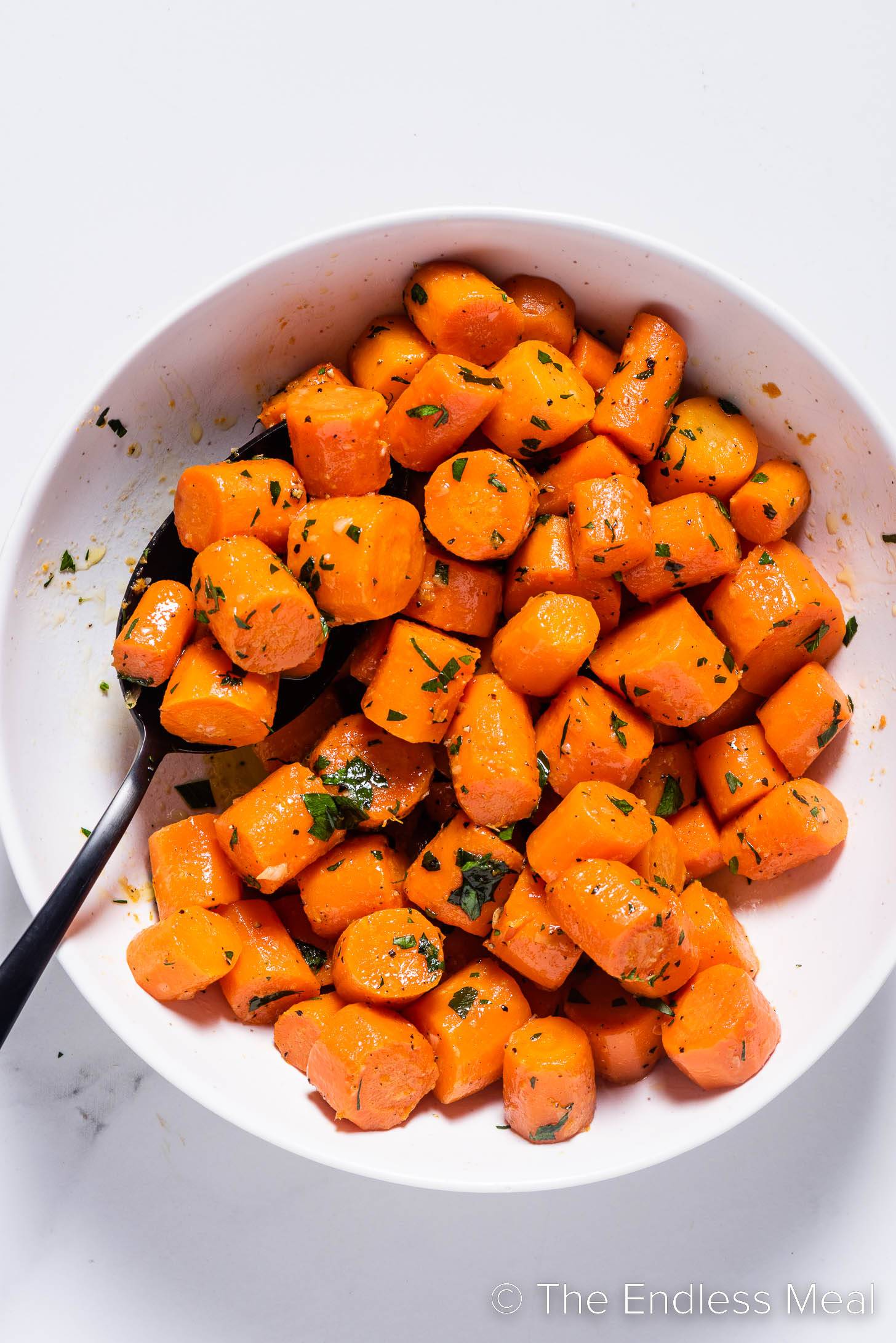 These buttered carrots are one of those simple side dishes I make all the time. The carrots simmer in butter and garlic until tender, then get a sprinkle of fresh parsley at the end. They’re quick, easy, and the kind of vegetable everyone at the table is happy to see. View this recipe on my website!