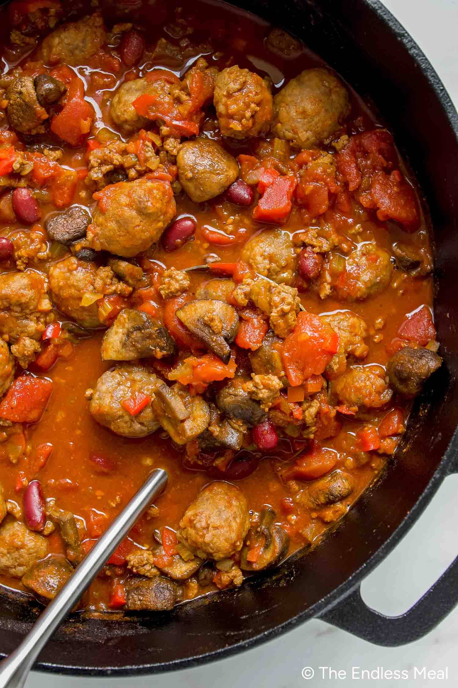 This sausage chili is one I make when I'm craving something really hearty. It’s loaded with Italian sausage, ground beef, and sautéed mushrooms, which give it so much rich flavor. I often keep it beanless, but you can absolutely add a can or two if your family loves beans — it’s delicious either way. View this recipe on my website! Make the recipe, take a picture, and share it in the comments section. You'll automatically be entered to win a $100 gift card. This month, we're making one of my...